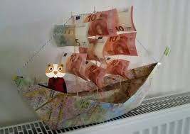 Geldscheine als segelschiff verpack.